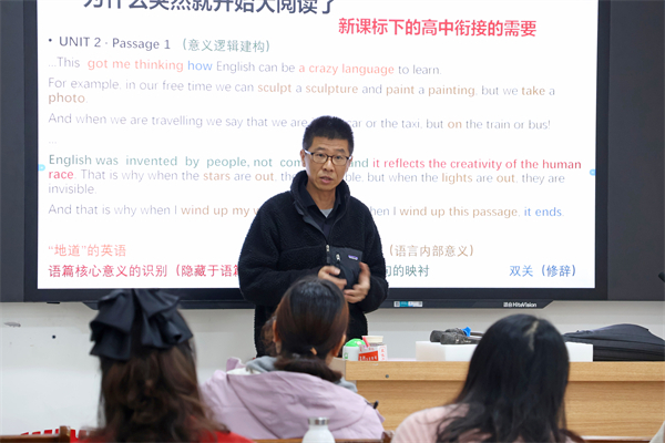 夹外的老师们就日常教学中的疑问与各位教研员进行探讨,教研员们建议老师们在新教材的基础上,基于学情找到最适合学生的方法;阅读与写作应从平时积累,引导学生关注生活,从生活情境中来写作,引发学生对生命的思考;顺应初高衔接的需要,重视大阅读练习,让学生从单词记忆转变为语块记忆,把握提纲式写作;无论什么科目,教学都应着眼于整体,鼓励学生开拓视野,多阅读。