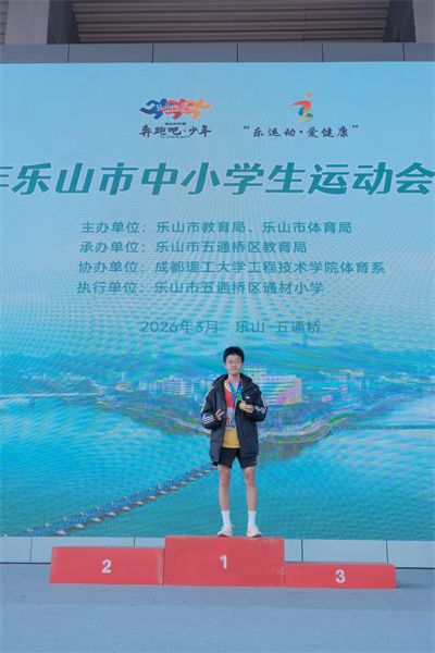 3月19日至22日,2026年乐山市中小学生运动会田径比赛在乐山市五通桥区举行,夹江外校运动健儿在韩睿智、程晔老师的带领下代表夹江队参赛,经过几天的激烈角逐,取得了诸多奖项,并获得初中组团体总分第二名。